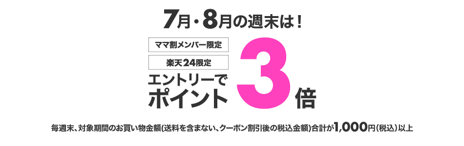 ママ割メンバー限定 7 8月の週末はエントリーで楽天24でのお買いものがポイント3倍