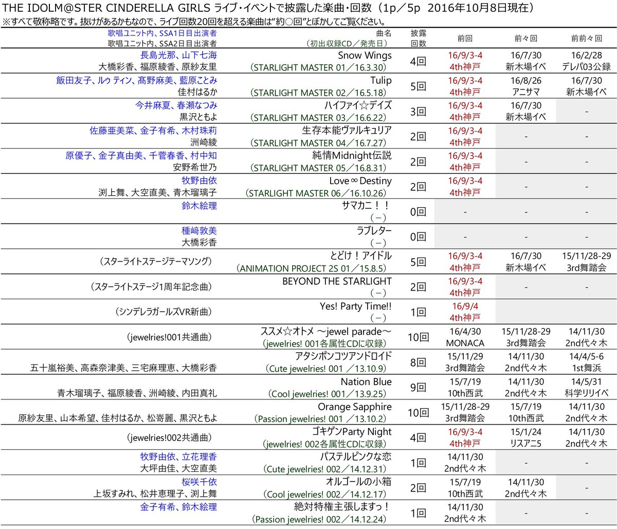 アイマス声優全曲リスト Sur Twitter ライブ イベントで披露されたシンデレラガールズの楽曲一覧 1 です 主にデレステ 全員曲 アニメ曲