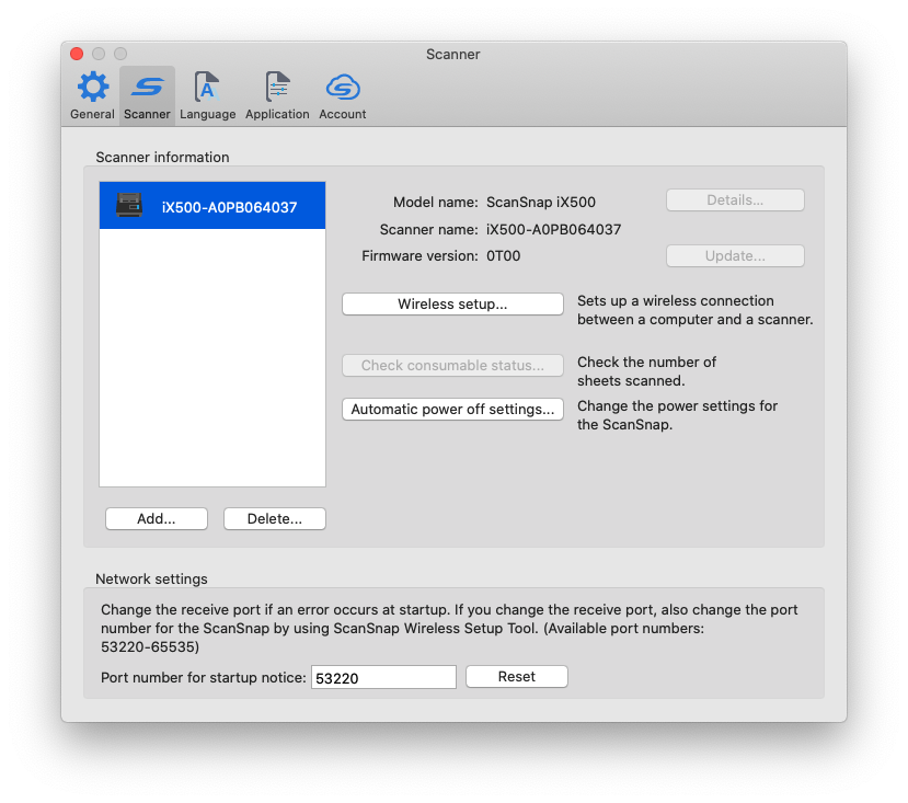 Scansnap Cloud Operation Ix500 Mac Os Main Window
