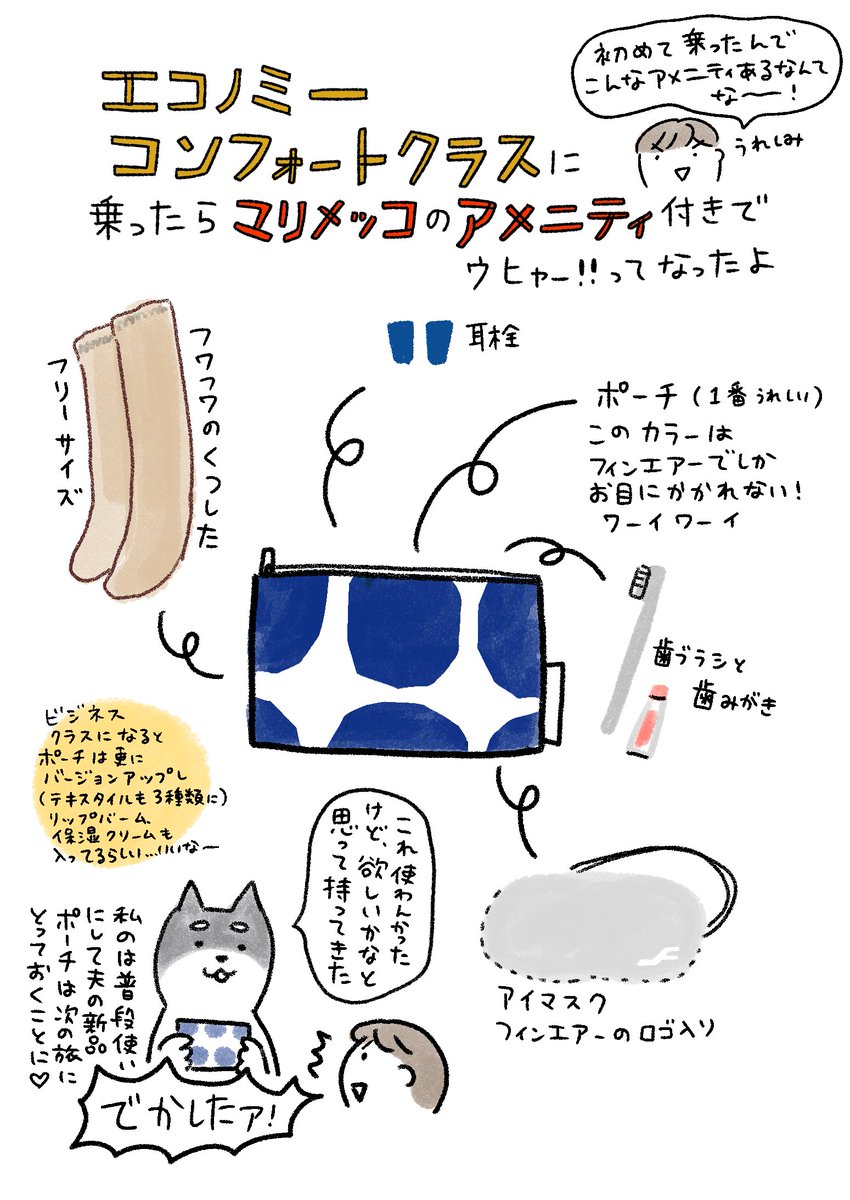 てらいまき 帰りのフィンエアーはエコノミークラスコンフォートクラスだったのですが マリメッコのアメニティ付いてたなんて知らなかったよ ありがてえ 死ぬまでにビジネスクラスに乗ってみたい マリメッコ フィンランド航空